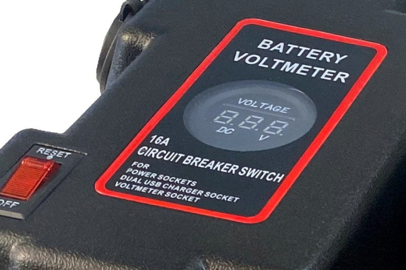 Praktický box pro akumulátory 12V do 100Ah s kabeláží, svorkami a zásuvkami 12V a USB. Do víka lze instalovat menší nabíječku, měnič nebo solární regulátor a tím dále rozšířit možnosti zařízení. Měření napětí baterie integrovaným voltmetrem - zobrazení při zapnutí vypínače s jističem.