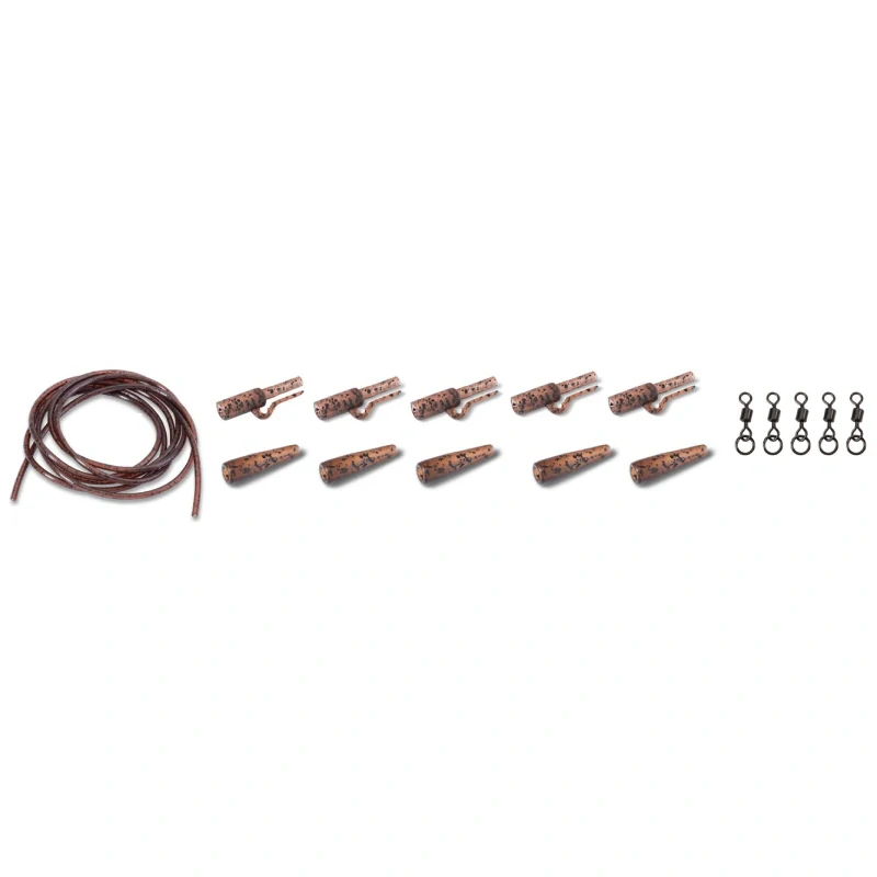 Tahle sada je hotové řešení pro většinu montáží s pevným olovem. Safety Lead Clip spolehlivě drží olovo při nahození i při zdolávání, ale v případě utržení nebo v překážkách umožní rybě rychle se olova zbavit. Obratlík Anaconda Camou Flex Ring Swivel s volným flex kroužkem zlepšuje pohyblivost návazce a pomáhá omezit zamotání montáže. Součástí je i PVC Anti Tangle Tube, která chrání vlasec a drží sestavu čistě u dna.