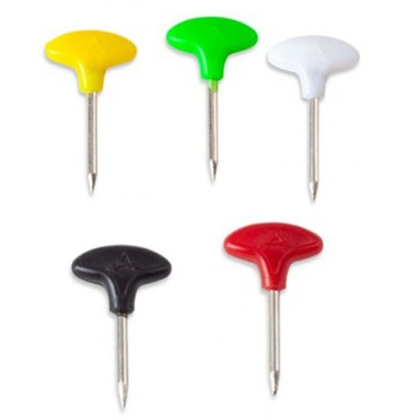 Barevné špendlíky na návazce. Pomocí barev si můžeme označit různé druhy návazců nebo si je rozdělit podle délky. Barevné špendlíky nám umožní udělat si dokonalý přehled v pouzdru na návazce.