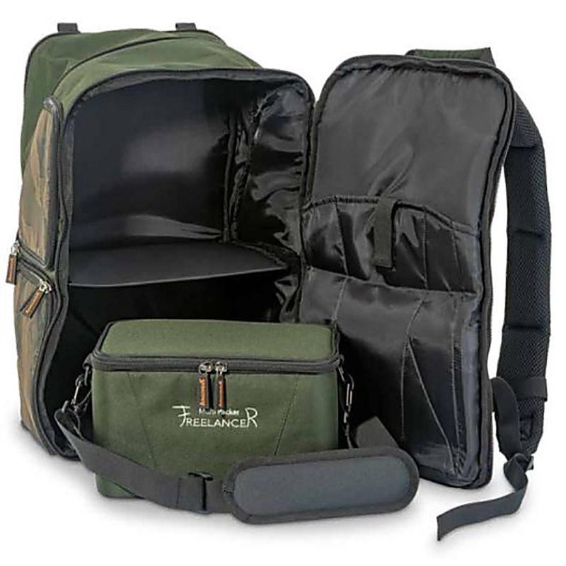 Anaconda Freelancer Multi Packer je 38litrový batoh nabízející velký vnitřní prostor a důmyslné členění. Díky dvěma bočním kapsám, dvěma všitým plochým předním kapsám a členění hlavních komor pojme veškerou výbavu přehledně a bezpečně. Vnitřní prostor je rozdělen na spodní hlavní komoru (32 × 24 × 22 cm), která obsahuje samostatnou kapsu včetně termo přihrádky, a horní hlavní komoru (32 × 28 × 18 cm), vhodnou pro boxy a další vybavení.