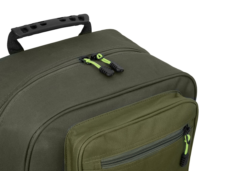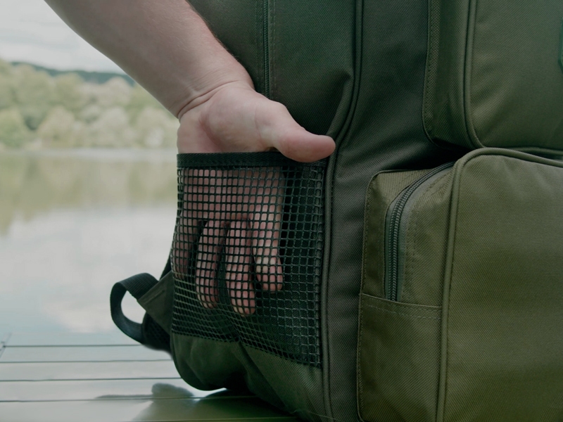 Důmyslně promyšlené rozložení dělí prostor na velkou hlavní komoru a dvě přední kapsy. Hlavní část nabízí dostatek místa pro oblečení i rybářské příslušenství a navíc je vybavena vyztuženou přepážkou.