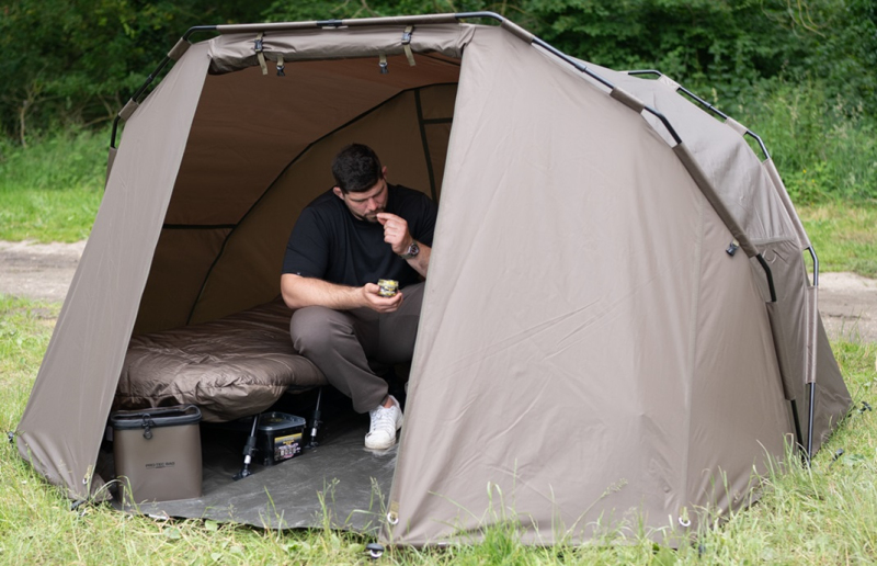 Prostorný bivak pro dvě osoby a vybavení. Je vyrobený z pevné a odolné nepromokavé tkaniny 210D s vodním sloupcem 5000 mm. Ta je doplněná o spolehlivé X-Strong zipy pro maximální životnost. Součástí je i podlážka z Heavy Duty odolného materiálu. Velké moskytiérové okno v zadní části poskytuje dostatečnou ventilaci i v horkých dnech. Okno lze uzavřít pomocí krytu před deštěm. Kovová očka pro kolíky. Součástí balení je sada kolíků a přepravní obal.
