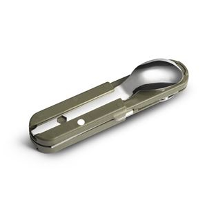 BIVOUAC CAMP KNIFE ARMY GREEN HANDLE - TEXTILE POUCH - FORK and SPOON