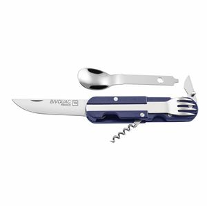 BIVOUAC CAMP KNIFE BLUE HANDLE - TEXTILE POUCH - FORK and SPOON