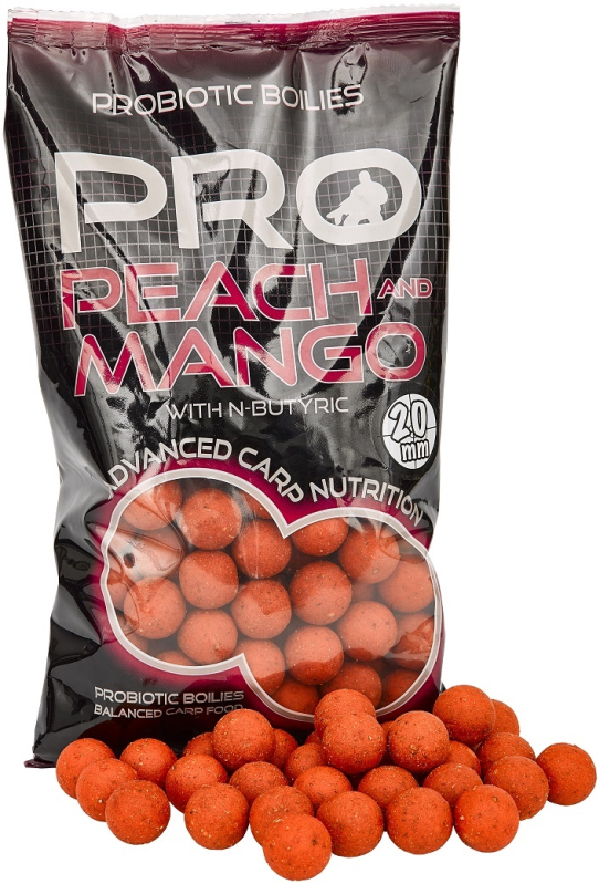 PRO PEACH & MANGO with N-BUTYRIC (broskev & mango s kyselinou máselnou)Série PROBIOTIC boilies byla původně vyvinutá speciálně pro anglický trh hlavně na krátké výpravy a rychlý závodní rybolov. Více zde