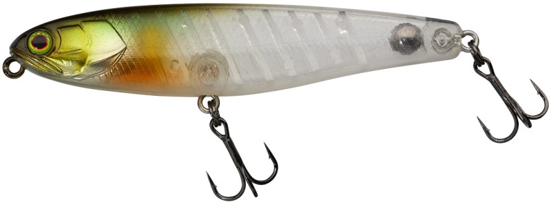 Povrchová nástraha na štiky a boleny. Ideálně funguje při oživování špičkou prutu. Díky pohyblivé tungstenové zátěži daleko a přesně letí, při pohybu silně chrastí. Tichá varianta je vhodná na silně prochytávané vody a opatrné dravce. Délka 95 mm, hmotnost 12,8 g, potápivost-povrchová hladinová nástraha, plovoucí nástraha.