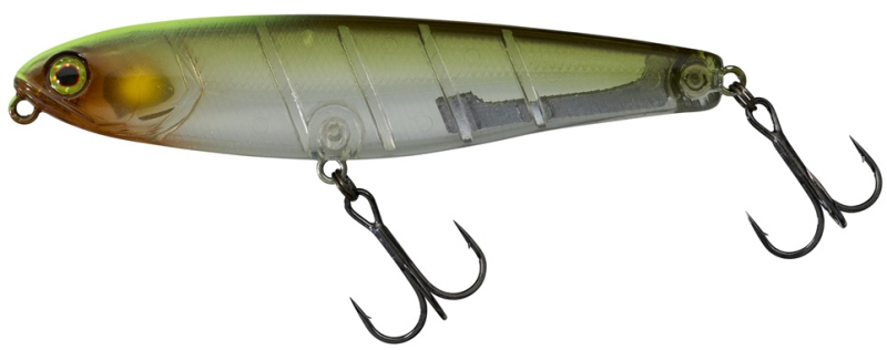 Povrchová nástraha na štiky a boleny. Ideálně funguje při oživování špičkou prutu. Díky pohyblivé tungstenové zátěži daleko a přesně letí, při pohybu silně chrastí. Tichá varianta je vhodná na silně prochytávané vody a opatrné dravce. Délka 95 mm, hmotnost 12,8 g, potápivost-povrchová hladinová nástraha, plovoucí nástraha.