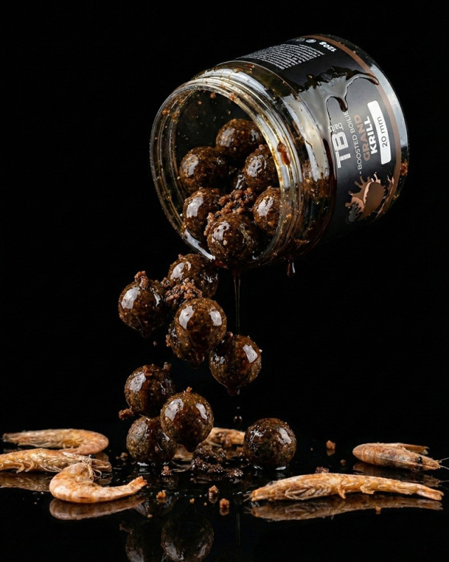 Název Grand Krill není náhoda. Krill je zde obsažen hned v několika složkách, jedná se krillovou moučku, krillovou tekutou potravu a prémiovou krillovou esenci. Tyto krillové složky jsou precizně nakombinovány s dalšími extrakty a tekutými potravami z mořských živočichů. Významnou roli v této řadě hraje i výtažek z mořských řas, který významně podtrhává silnou vůni mořských živočichů. Nechybí ani ověřené chuťové stimulanty, které používáme ve všech našich produktech, na které kapři neuvěřitelně skvěle reagují. Během testování se našemu týmu podařilo ulovit nespočet nádherných ryb na svazových vodách s několika kapry přesahujícími 25 kg. Boilie bylo testováno i během zimního období, a i ve studené vodě dosahovalo naprosto fantastických výsledků.