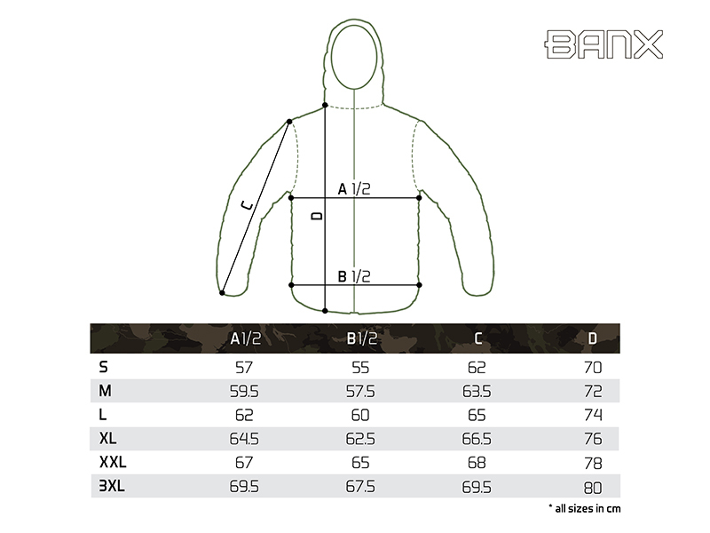 Design se skládá z černé barvy, kterou stylově doplňuje naše patentovaná kamufláž BANX. Díky této kombinaci ji můžete využít nejen při rybolovu, ale také k běžnému nošení.