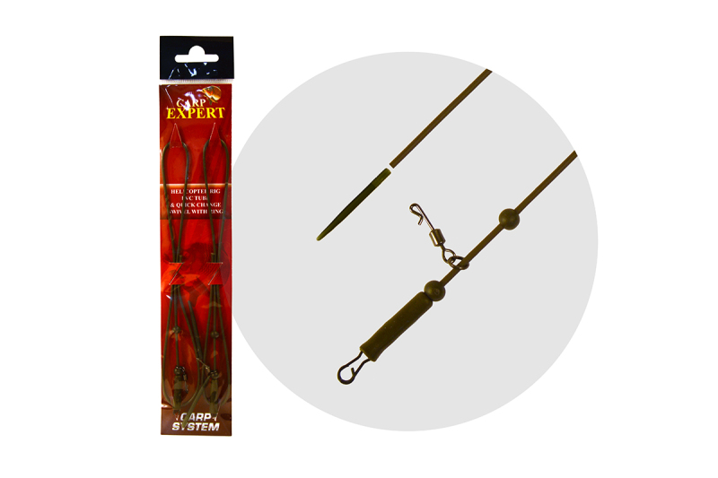 Dva kusy tradičních kompletních helikoptérových návazců, montované se speciálními rychlospojkami, gumovými objímkami proti zamotání (antitangle sleeve), které mají i funkci ochrany vázání. Více zde