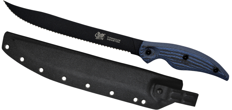 Nože Cuda jsou doposud symbolem kvality, ale s touto řadou získáme za naše peníze nejvyšší kvalitu. Historie výrobků Cuda sahá skoro 40 let dozadu, kdy se zrodil v hlavě Ricka Constantinea nápad o použití kvalitních nožů a nářadí, které splní všechny nároky rybářů a myslivců. Během výroby předmětů používají výhradně slitiny titanu, hliníku a německé nerezivějící oceli. Tím dosáhnou kvalitu, díky které platí doživotní záruka produktu! Charakterizuje ho široká čepel - odolná proti slané vodě. Nerezivějící ocel typu USA 40A. Základem kvalitních výrobků je kvalitní ocel! Čím více uhlíku se do ocele přidá, tím dostaneme odolnější materiál. Rukojeť lisovali za studena ze 47 vrstev. Výjimečně odolný a i s vlhkými rukami pokrytými slizem ho můžeme dokonale uchopit. Materiál v celé délce výrobku. - Mnoho z nás vidělo nůž, kterému se čepel vylomila z rukojeti. To bylo proto, protože v ní materiál nebyl osazený po celé délce. Pro zamezení tohoto problému při výrobcích Cuda je přítomný materiál až po konec. To je vidět v rukojeti s průhlednou částí. Jako dárek dostaneme pevné pouzdro, které dobře drží nůž.