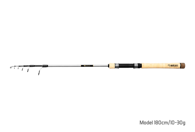 Teleskopický prut už dávno neznamená automaticky nižší kvalitu. To dokazuje řada teleskopů AZTEC, která v sobě snoubí kompaktní rozměry při zachované kvalitě komponentů. Využili jsme kvalitní 24T karbon, na kterém je celý prut postaven, použili velmi dobrá očka, pěkný a odolný korek. Kompletní prut tak splňuje všechny kvalitativní požadavky děleného prutu při zachování excelentních kompaktních rozměrů.
