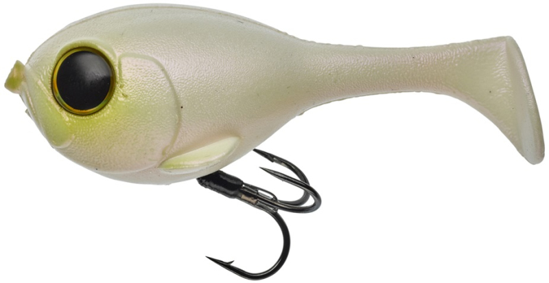 Gumová nástraha pro lov štik v mělké vodě. Ocásek má silný vibrační pohyb. Díky průchozímu uchycení nástrahy na fluorocarbonový návazec nebo lanko dochází po záběru k jejímu uvolnění a posunutí nahoru. Tím se minimalizuje její poškození od zubů dravce. Materiál je extra odolný a vydrží desítky štik. Ryba visí jen na samotném háčku, což navíc minimalizuje možnost „vyklepání“ nástrahy při boji s rybou. Pro lov ve větší hloubce stačí před nástrahu na průběžno přidat texas olovo. Nejlépe funguje při klasickém tažení a změnách rychlosti navíjení. Některé barvy obsahují UV body. Daleko a přesně letí. Délka 82 mm, váha 26 g, potápivost 0,1-0,3 m, potápivá nástraha.