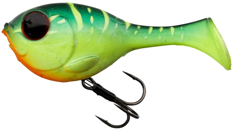 Gumová nástraha pro lov štik v mělké vodě. Ocásek má silný vibrační pohyb. Díky průchozímu uchycení nástrahy na fluorocarbonový návazec nebo lanko dochází po záběru k jejímu uvolnění a posunutí nahoru. Tím se minimalizuje její poškození od zubů dravce. Materiál je extra odolný a vydrží desítky štik. Ryba visí jen na samotném háčku, což navíc minimalizuje možnost „vyklepání“ nástrahy při boji s rybou. Pro lov ve větší hloubce stačí před nástrahu na průběžno přidat texas olovo. Nejlépe funguje při klasickém tažení a změnách rychlosti navíjení. Některé barvy obsahují UV body. Daleko a přesně letí. Délka 82 mm, váha 26 g, potápivost 0,1-0,3 m, potápivá nástraha.