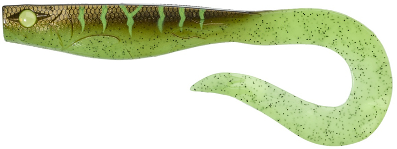 Dexter gumové nástrahy jsou vyrobeny z vysoce kvalitního materiálu. Ten se vyznačuje svojí obrovskou jemností, která dodává nástraze neuvěřitelně plynulý a bezchybný pohyb. Na druhou stranu je však materiál odolný vůči mechanickému poškození a roztrhání od ryby. Unikátní je i způsob barvení. Složité barevné kombinace nejsou jen nastříkány na povrchu nástrahy, ale jsou součástí materiálu, ze kterého je nástraha vytvořena. To dodává barevnému provedení nástrahy ještě větší odolnost proti poškození při záběru ryby. Provedení s twisterovým ocáskem je vhodné na štiky, candáty, sumce. Perfektní i na mořskou vláčku. Ocásek je velice měkký a skvěle pracuje i při minimálním pohybu. Napuštěno speciálním aromatem pro ještě větší dráždivý efekt. Délka 15 cm, váha 21,5 g.