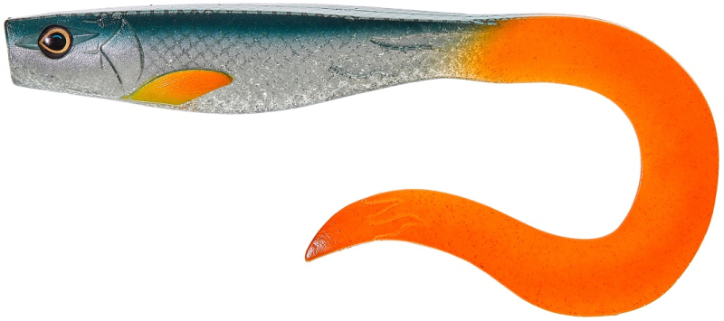 Dexter gumové nástrahy jsou vyrobeny z vysoce kvalitního materiálu. Ten se vyznačuje svojí obrovskou jemností, která dodává nástraze neuvěřitelně plynulý a bezchybný pohyb. Na druhou stranu je však materiál odolný vůči mechanickému poškození a roztrhání od ryby. Unikátní je i způsob barvení. Složité barevné kombinace nejsou jen nastříkány na povrchu nástrahy, ale jsou součástí materiálu, ze kterého je nástraha vytřena. To dodává barevnému provedení nástrahy ještě větší odolnost proti poškození při záběru ryby. Provedení s twisterovým ocáskem je vhodné na štiky, candáty, sumce. Perfektní i na mořskou vláčku. Ocásek je velice měkký a skvěle pracuje i při minimálním pohybu. Napuštěno speciálním aromatem pro ještě větší dráždivý efekt. Délka 21 cm, váha 64 g.