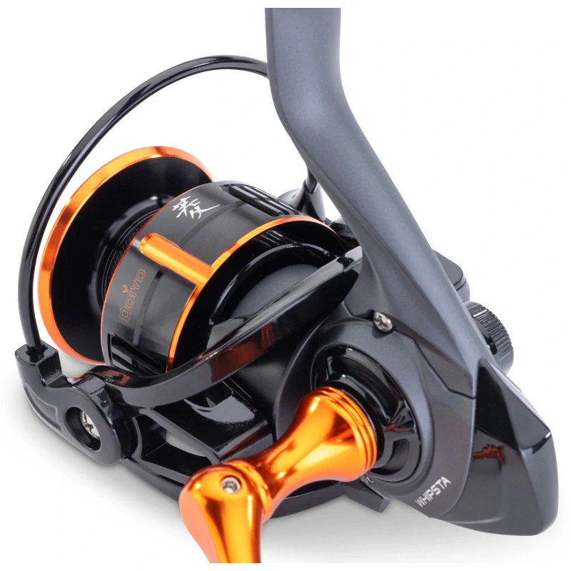 Doiyo Whipsta RSX je extrémně kvalitně zpracovaný naviják, který je vybaven 10+1 ložisky s těsněním a silnou, plynule pracující přední brzdou. Barevně je sladěný s ultra rychlou prutovou sérií a při lovu zaujme hedvábně jemným chodem i přesností. Super lehký, top vyvážený Ultra-Light hliníkový rotor (cca o 15 % lehčí než běžné rotory) zlepšuje cit, snižuje vibrace a zvyšuje komfort při celodenním chytání. Fast Drag System umožňuje dosažení plné brzdné síly už po cca 1,5 otočkách. U tohoto modelu je brzdná síla až 12 kg. Karbonové brzdové podložky, CNC komponenty a voděodolné tělo dělají z této role spolehlivý nástroj pro moderní přívlač i jemnější techniky.