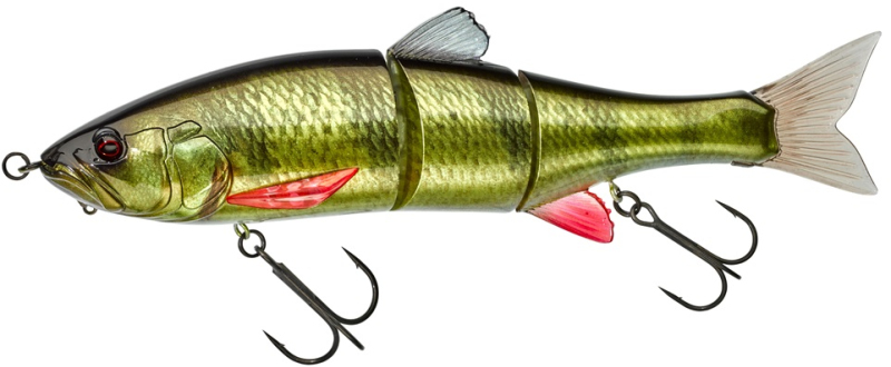 Trojdílná nástraha pro lov štik. Při klasickém tažení má dokonalou S akci imitující přirozený pohyb rybičky. Tu ještě můžete oživit jerkováním špičkou prutu. Ideální pro lov v mělkých zátokách a lov kolem břehu. Pod hlavou očko pro uchycení přídavné zátěže. Háčky na vsazených obratlících pro minimální ztrátovost ryb při zdolávání. Některé barvy obsahují UV body. Délka 18 cm, váha 54,5 g, potápivost 0,05-1 m, plovoucí nástraha.