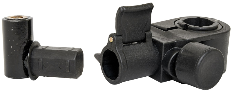 Otočný držák na příslušenství zakončený závitem. Pasuje na kulaté nohy 25-30-36 mm.
