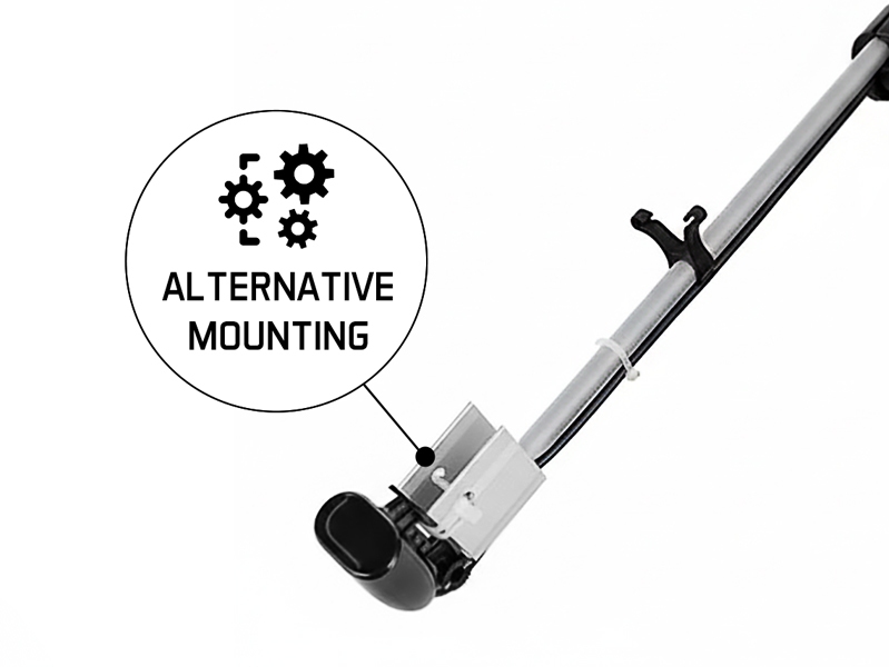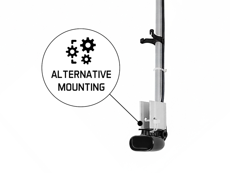 Sklon samotného držáku lze snadno nastavit pomocí praktického výklopného mechanismu. Můžete si tak nejen nastavit sondu do roviny pod hladinou, ale v případě mělké vody ji i lehce vyklopit směrem nad vodu, aby nedošlo k jejímu poškození.