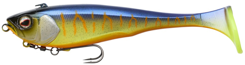 Gumová nástraha pro lov štik v mělké vodě. Ocásek má silný vibrační pohyb. Díky volnému uchycení nástrahy na trojháčku s obratlíkem dochází po záběru k jejímu uvolnění. Tím se minimalizuje její poškození od zubů dravce. Materiál je extra odolný a vydrží desítky štik. Ryba visí jen na samotném háčku, což navíc minimalizuje možnost „vyklepání“ nástrahy při boji s rybou. Pro lov ve větší hloubce stačí před nástrahu na průběžno přidat texas olovo nebo přicvaknout do očka přídavnou zátěž. Nejlépe funguje při klasickém tažení a změnách rychlosti navíjení. Některé barvy obsahují UV body. Dvojí možnost nastražení s háčkem pod nebo nad nástrahou. Délka 228 mm, váha 130 g, potápivost 0,1-0,5 m, potápivá nástraha.