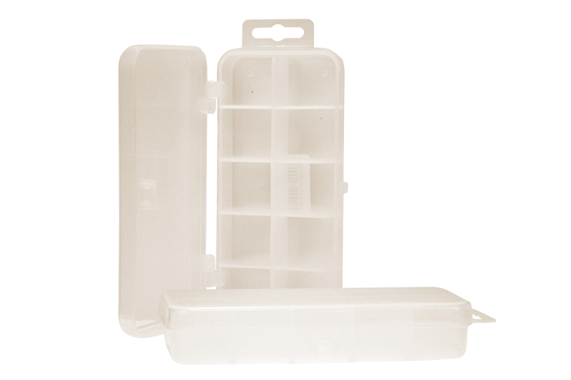 Krabička s 10 přihrádkami rozdělená na 2x5 kusů stejných přihrádek. Více zde