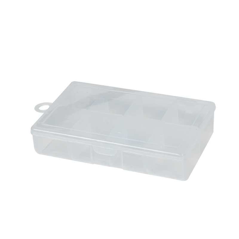 Umělohmotná krabice na háčky s 8mi přihrádkama, které dělí krabičku na stejné části a bezpečně uzavíratelná víkem. Více zde