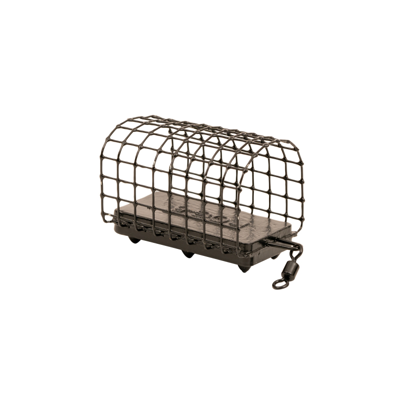 K rybolovu v tekoucích vodách jsou potřebné košíky s extra olověnou zátěží, podobně jako tento M6 košík. Na dně umístěné, třeba i 100gramové olovo stabilně drží náš košík i ve větším proudění. Na spodní straně olověné desky jsou malé výstupky, které ještě zvyšují stabilitu. Drátování je adekvátně tenké! Proč? Proudění se do něho zapře méně, krmná směs se snadněji rozpustí. Výsledkem je rychlejší rybolov a více ryb na krmném místě.