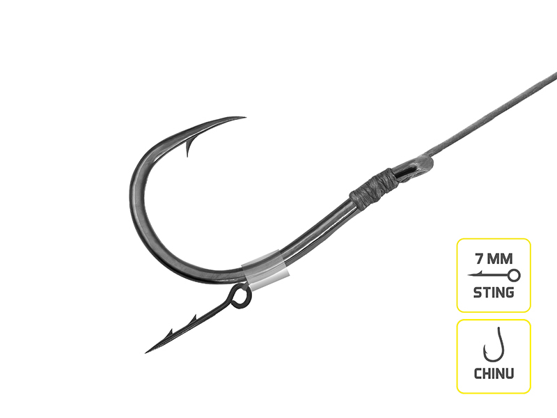 Návazec je zhotoven z jemné pletené šňůrky, která se pod vodní hladinou chová maximálně přirozeně a nevyvolává tak zvýšenou pozornost ryb. O spolehlivý zásek se starají ověřené tvary háčků Turner a Chinu. Jejich specifický tvar a výjimečná ostrost zaručují bezpečné zdolávání a minimalizují riziko ztráty ryby během souboje.