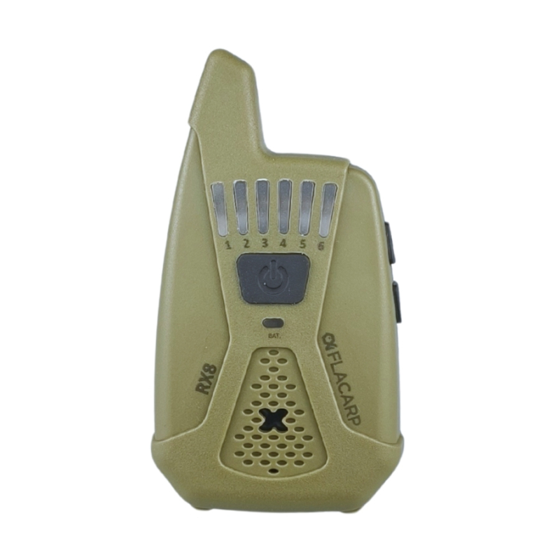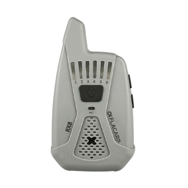 Bezdrátový příposlech FLACARP RX8 převzal od svého předchůdce RX7 skvělé parametry (velký dosah až 1km, 12 kanálů, možnost ovládání až 4 světel FLACARP) a přidává další užitečné funkce_ díky funkci blokace alarmových čidel již nebudete poslouchat žádné zbytečné alarmy. Signál z čidel je potlačen při záběru nebo lze alarmy vypnout jedním stlačením tlačítka na příposlechu. Byla vylepšena také funkce upozornění při nežádoucím vypnutí signalizátoru záběru jednoznačným kolísavým tónem. Zcela přepracována byla funkce ukládání (učení) dalších signalizátorů a čidel – vše je nyní mnohem jednodušší.