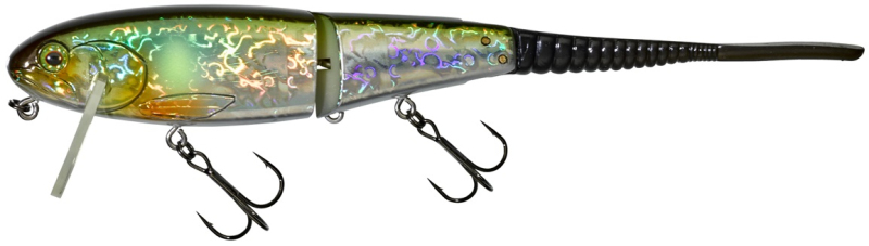 Flat Bone Clicker je kloubový wobler typu „Jointed Big Bait“, který vyniká výrazným rolovacím pohybem i při pomalém vedení. Díky kloubovému tělu, lopatce a gumovému ocasu lze nástrahu vést i metodou „Walking the Dog“ s minimálním vychylováním do stran. To je ideální při lovu v těsné blízkosti překážek nebo za zhoršených podmínek, kdy jsou dravci opatrní a schovaní. Při plynulém vedení wobler generuje silný pohyb, který spolehlivě upoutá pozornost predátorů i z větší vzdálenosti. Nástraha je vhodná zejména pro lov štik, sumců a velkých candátů. Některé barvy obsahují UV body pro ještě větší dráždivost. Délka 220 mm, hmotnost 48 g, potápivost 0–0,3 m+, plovoucí nástraha.