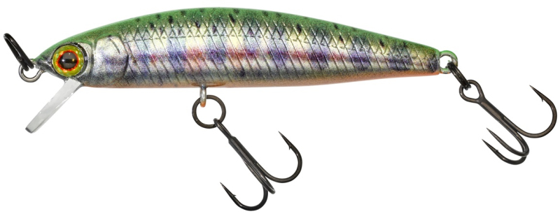 FLAT FLY 50 SP je nepostradatelná nástraha pro začátek sezóny a lov opatrných ryb v chladnější vodě. Tento tichý, neutrálně vyvážený wobler s úzkým tělem je ideální do mělkých partií řek o hloubce 30 až 80 cm. Při velmi pomalém vedení proti proudu dokáže doslova zhypnotizovat pstruhy a vyprovokovat je k opakovaným útokům. V teplejší vodě a při vedení po proudu pak vyniká plynulým navíjením doplněným o jemné poškubávání. Skvěle funguje při lovu pstruhů, okounů a tloušťů v náročných podmínkách. Některé barvy obsahují UV body pro ještě větší dráždivost. Délka 50 mm, hmotnost 2,3 g, potápivost 0,1–0,5 m, neutrálně vyvážená nástraha.