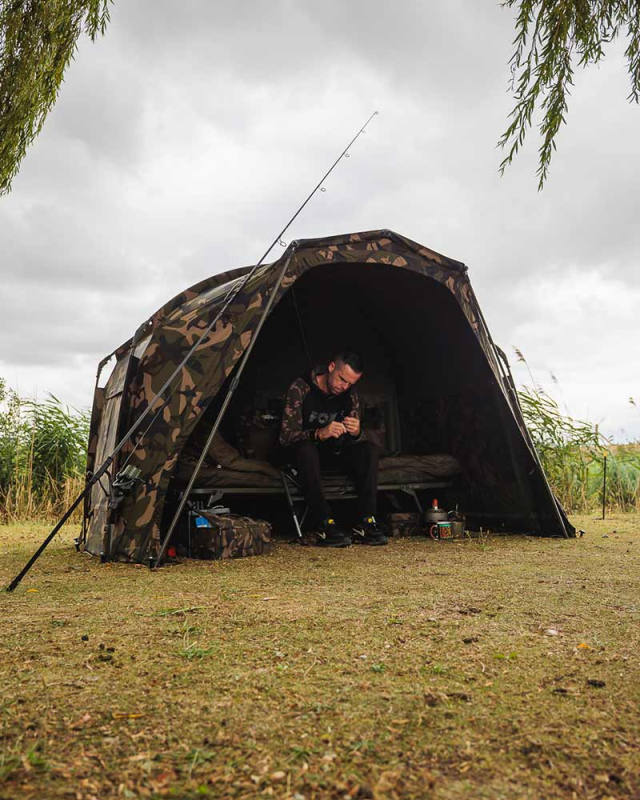 Frontier II - XL Deluxe WrapPřehoz Deluxe Wrap prodlužuje váš bivak o 60cm, nabízí tak větší ochranu a v kombinaci s připojením předním panele dostatek místa pro dvě lehátka. Kompletního zakrytí se dosáhne odepnutím předního panelu z bivaku a jeho připnutím na přehoz. Pro dosažení optimálního proudění vzduchu jsou čtyři větrací otvory s dvojitými zipy zarovnané s větracími otvory na bivaku, zatímco přes spojky připojené podpěrné tyče přidávají rozšiřujícímu žebru rámu na stabilitě. Snadno se zajišťuje s pomocí pásků na suchý zip a D-oček. V nabídce v zeleném i camo provedení