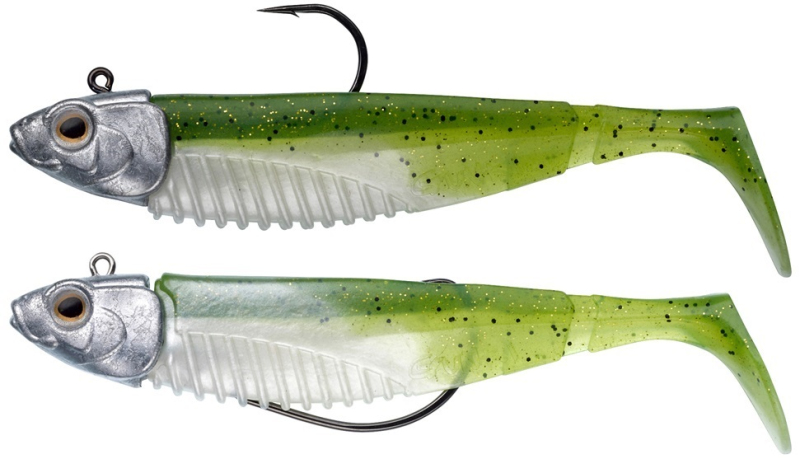 SWM Concet – jednoduché použití nástrahy s klasickou hlavičkou nebo texas hlavičkou. Hlavička má specifický protáhlý tvar s dráždivým okem. Díky tomuto tvaru je stabilnější v silnějším proudu nebo větší hloubce. Zároveň dokonale stabilizuje nástrahu proti převracení. Imitace žáber na hlavičce pomáhá držet pevně nástrahu na hlavičce ve správné pozici. Klasická hlavička je vhodná pro lov spíše na čistém dně. Texas hlavička je vhodná pro použití do překážek díky skryté poloze háčku, která brání zachytávání. G Bump SWM je nástraha vhodná pro lov candátů, okounů i štik. GBump má nezaměnitelný trojúhelníkový tvar tělíčka. Tělíčko je doplněno o kopýtkový ocásek. Tato kombinace vytváří charakteristický a lákavý pohyb celé nástrahy do stran. Ve spojení s pohybem ocásku je to pro dravce neodolatelné sousto. G Bump lze plynule přitahovat vodním sloupcem i jigovat po dně. Tělíčko je napuštěno anýzovým aromatem pro ještě větší atraktivitu. SBC vroubkování bříška pro lepší aplikaci přídavného atraktantu – gelu nebo spreje. Sada obsahuje 1x G Bump na klasické bezolovnaté hlavičce 20 g, háček 3/0 a 1x G Bump na texas bezolovnaté hlavičce 20 g, háček 3/0. Délka nástrahy i s hlavičkou je 12,5 cm, váha samotné gumové nástrahy bez hlavičky je 12,3 g.