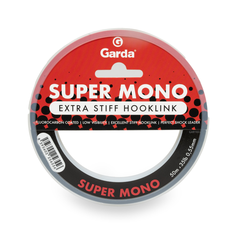 SUPER MONO je skvělý moderní návazcový materiál. Má podobné vlastnosti jako fluorocarbon, ale má mnohem vyšší pevnost, odolnost a nosnost v uzlu. Ve vodě je velmi nenápadný, téměř neviditelný. Díky vysoké tuhosti je velmi obtížně vyplivnutelný. Jakmile kapr nasaje nástrahu, prakticky není šance, aby se zbavil háčku. V těchto silnějších průměrech je tento návazcový materiál použitelný i v obtížných podmínkách, jako je říční rybolov, v místech poblíž vázek nebo ostrých hran kamenů či škeblí. Je též skvělý na kombinované návazce nebo vytvoření Ronnie rigu. Velmi dobře se dá krimpovat. Je to též zcela excelentní šokový vlasec do těch nejobtížnějších situací.