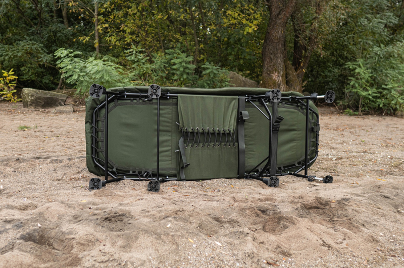 Na lehátku byla použitá pevná ocelová konstrukce a silné polstrování v kombinaci tkaniny a hřejivého polar fleece. Ve střední části naleznete výztuhu, která je propletená elastickým lankem a díky ní si můžete nastavit požadovanou tuhost. Pod hlavou je měkký polštář, který lze jednoduše vyjmout.