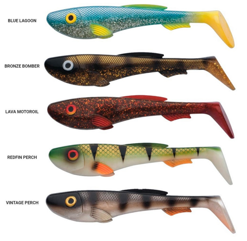 Abu Garcia Beast Paddle Tail je dostupná ve velikosti 17cm a 21cm a ve 14 barevných provedeních.