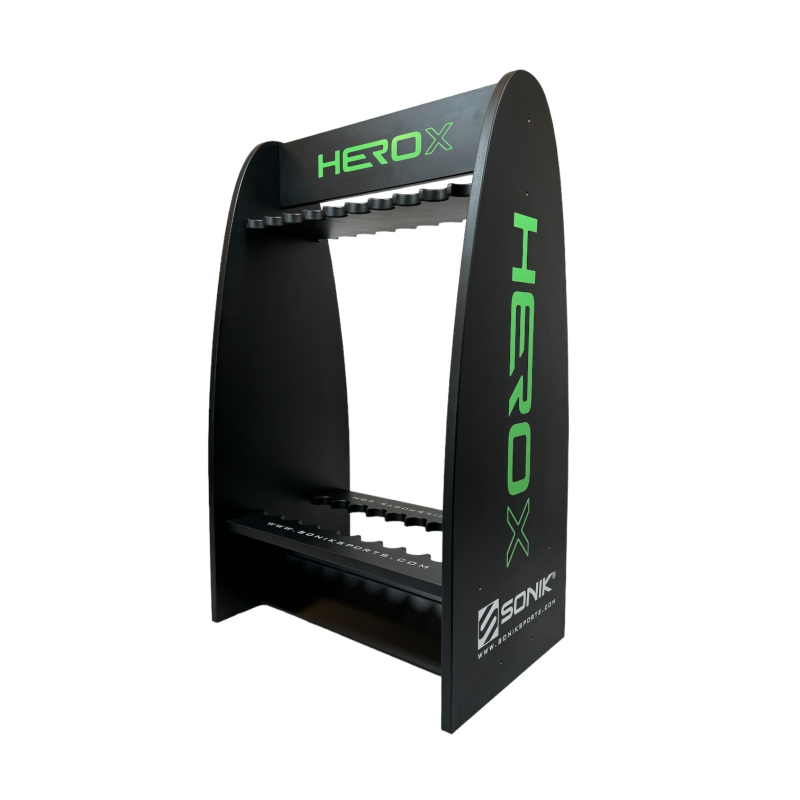 Stojan značky Herox pro vystavení 20 prutů. Více zde