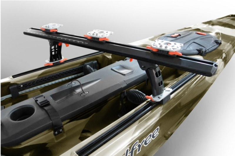 Hrazda se jednoduše uchytí do kolejniček přímo na kajaku, kde je možné posouvání po celé délce. Balení obsahuje tři držáky do kterých lze uchycení dalších platforem například pro sonar, foťák, mobil, kamera a jiné. Jednoduché posouvání pomocí páček je možné nastavení přesně pro potřeby uživatele. Délka 99cm.