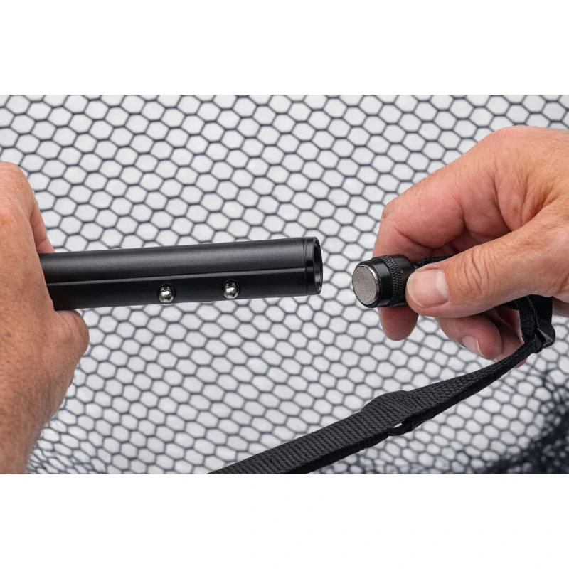 Magnetické uchycení na popruhu zajišťuje, že podběrák máte stále připravený k rychlému použití, a po manipulaci jej snadno zajistíte zpět. Pogumovaná síť se středními oky je šetrná k rybám a praktická při práci s trojháčky, zatímco pevný rám a Double Pin jištění dodávají jistotu při podebrání.