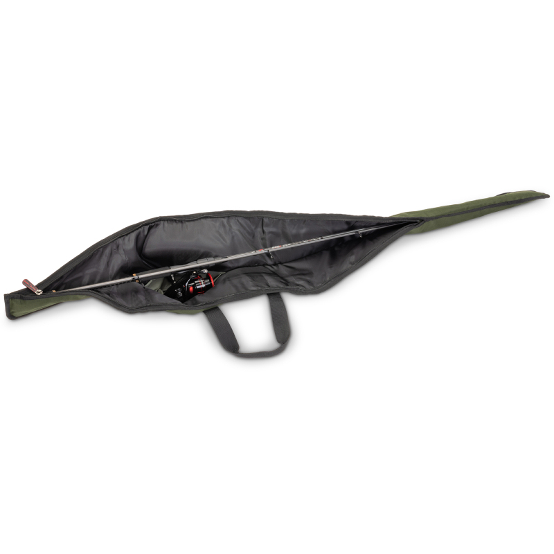 Toto lehké a odolné pouzdro poskytuje ideální ochranu pro jeden kompletně osazený přívlačový prut. Promyšlený tvar s prostorným, polstrovaným vybráním pro naviják umožňuje bezpečné a snadné uložení prutu i s navijákem bez rizika poškození. Dva dobře umístěné transportní popruhy zaručují pohodlné nošení a odolný polstrovaný materiál chrání prut před nárazy, otěrem a nečistotami. Celopropínací zip po celé délce poskytuje rychlý přístup a maximální komfort při manipulaci.