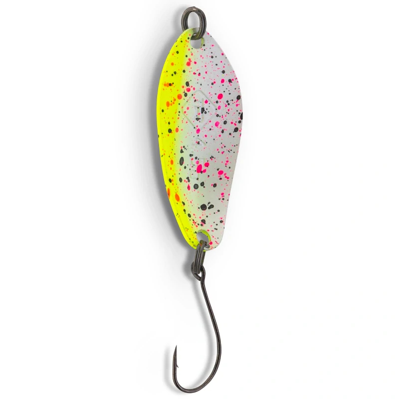 Iron Trout Heavy Wave Spoon je plandavka navržená pro chytání pstruhů na vodách, kde je potřeba prochytat větší plochu a dostat nástrahu dál od břehu. Tvar těla podporuje stabilní let při náhozu a při tažení vytváří výrazný pohyb do stran, který vyvolává reakční záběry i u opatrných ryb. Povrchová úprava je UV aktivní, takže je nástraha lépe čitelná i při zakalené vodě nebo za šera. Osazení jednoháčkem je vhodné pro přesné vedení a šetrnější manipulaci s ulovenou rybou.