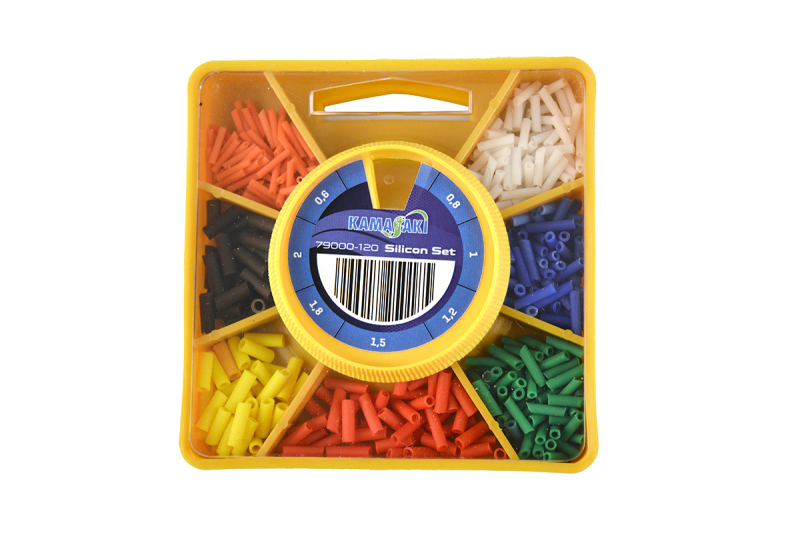 Větší verze sady pro upevnění plováků Kamasaki nám nabízí řešení od tloušťky 0,6 mm až po tloušťku 2 mm, takže na náš vlasec můžeme snadno připevnit jemnější plováky na cejny a větší plováky na řeky.