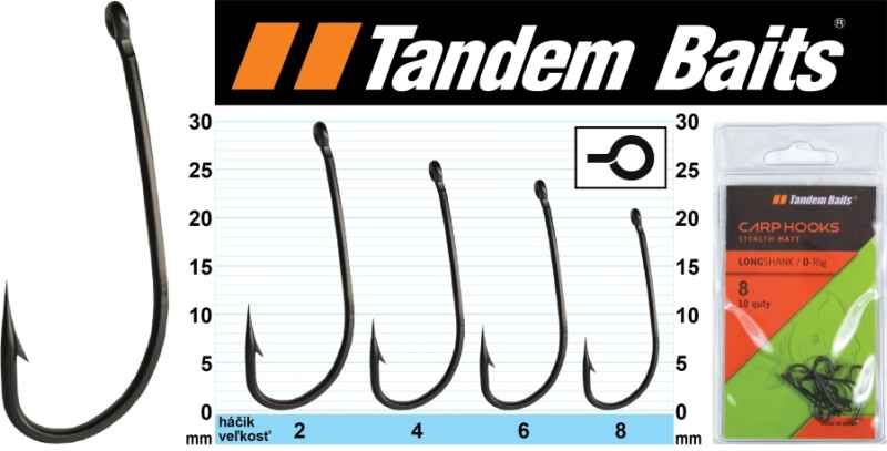 Kaprový háček Stealth - Longshank D-Rig - 10ksHáček má delší ramínko, očko zahnuté dovnitř a speciálně tvarovaný oblouček který zaručí dokonalé zaseknutí při nasátí. Více zde