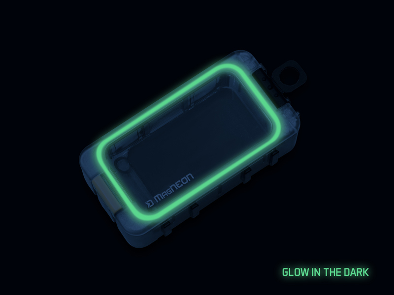 Delphin MagNEON je plně vodotěsná, což zaručuje spolehlivou ochranu uloženého obsahu před vodou, vlhkostí i nečistotami. Po obvodu je vybavena gumovým těsněním, které pevně přiléhá k víku a zabraňuje pronikání vody i za deště nebo manipulace ve vlhkém prostředí. Toto těsnění je navíc fosforeskující, takže krabičku snadno naleznete i za zhoršených světelných podmínek.