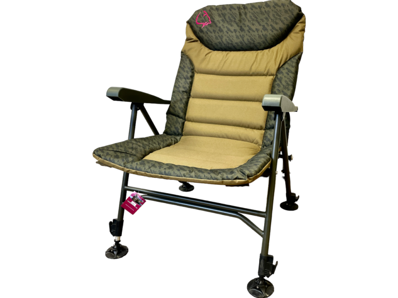 Rybářské a kemping luxusní křeslo s anatomicky tvarovaným opěradlem a polstrovaným polštářem v líbivém CAMO provedení matrace.Pevná a stabilní konstrukce je vybavena čtyřmi výkyvnými a výsuvnými patkami proti zaboření. Křeslo je opatřeno unikátním systémem naklápění opěradla nadzdvižením opěrek ruce.