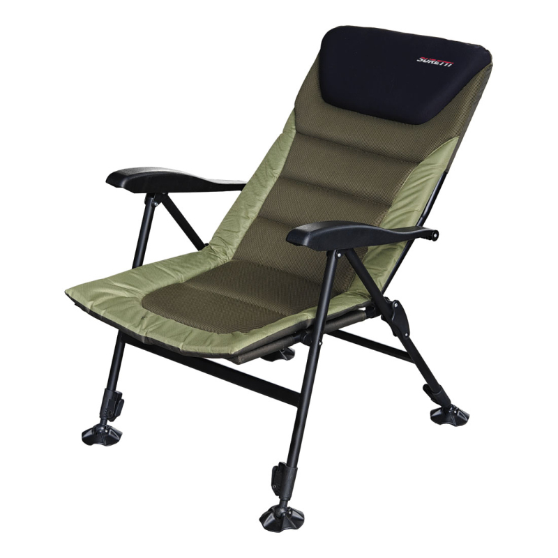 Styl, pohodlí, praktičnost a odolnost. Polstrovaný potah z polyesteru 600D je nejen skvělý na pohled, ale také poskytuje maximální pohodlí, které je umocněno loketní opěrkou a nastavitelným opěradlem. Čtyři individuálně nastavitelné nohy umožňují umístění křesla i na tom nejnerovnějším terénu a rozměry matrace zajišťují, že vaše tělo bude mít plnou oporu pro pohodlí i při dlouhých sezeních. Toto křeslo je vyrobeno z ocelových trubek s antikorozní úpravou a rybáři bude sloužit dlouhodobě.