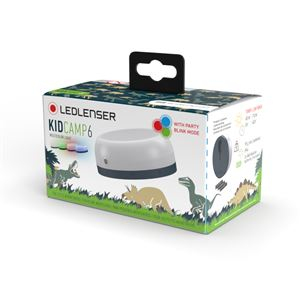 LEDLENSER KIDCAMP 6 je malá kapesní lucerna přizpůsobená speciálně pro citlivé dětské oči a dětské zacházení. Světlo je vhodné do stanů, karavanů, ale i do dětských pokojíků – zkrátka všude, kde je potřeba osvítit prostor příjemným neoslňujícím světlem. Svítilna je vybavena vestavěným hákem pro snadné uchycení. Možnost volby ze čtyř barev světla a funkce blikání navíc rozzáří každou dětskou oslavu. bílé, ale také červené, zelené a modré světlo s funkcí blikání bezpečně uzamykatelný bateriový box optika omezující oslnění integrovaný hák pro snadné zavěšení lucerny automatické vypnutí po dvaceti minutách svícení Balení obsahuje: svítilnu LEDLENSER KIDCAMP 6, sadu tří tužkových baterií AAAPARAMETRYSvětelný tok: 60/10 lmDoba svícení: 8/40 hodVýška: 29 mmHmotnost: 95 g (vč. baterií)Baterie: 3x AAALED: 1x Power LEDDobíjení: NeCertifikát odolnosti: IP44CRI (Color rendering index): 70Teplota světla: 6000 - 6500 KTest pádu z výšky: 1,5 mbarvy světla: bílá, červená, zelená, modrá