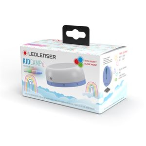 LEDLENSER KIDCAMP 6 je malá kapesní lucerna přizpůsobená speciálně pro citlivé dětské oči a dětské zacházení. Světlo je vhodné do stanů, karavanů, ale i do dětských pokojíků – zkrátka všude, kde je potřeba osvítit prostor příjemným neoslňujícím světlem. Svítilna je vybavena vestavěným hákem pro snadné uchycení. Možnost volby ze čtyř barev světla a funkce blikání navíc rozzáří každou dětskou oslavu. bílé, ale také červené, zelené a modré světlo s funkcí blikání bezpečně uzamykatelný bateriový box optika omezující oslnění integrovaný hák pro snadné zavěšení lucerny automatické vypnutí po dvaceti minutách svícení Balení obsahuje: svítilnu LEDLENSER KIDCAMP 6, sadu tří tužkových baterií AAAPARAMETRYSvětelný tok: 60/10 lmDoba svícení: 8/40 hodVýška: 29 mmHmotnost: 95 g (vč. baterií)Baterie: 3x AAALED: 1x Power LEDDobíjení: NeCertifikát odolnosti: IP44CRI (Color rendering index): 70Teplota světla: 6000 - 6500 KTest pádu z výšky: 1,5 mbarvy světla: bílá, červená, zelená, modrá