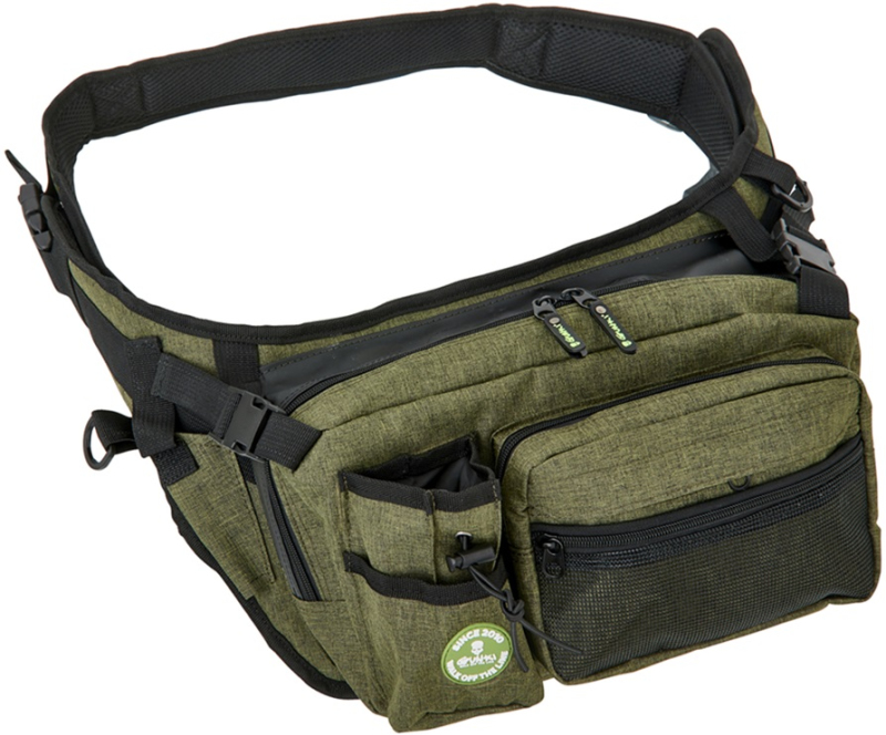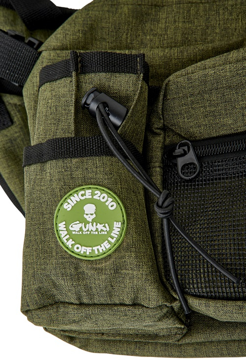Praktická ledvinka pro lov na přívlač. Obsahuje hlavní komoru na zip, která je navíc zajištěna klipy. Dále obsahuje menší síťovanou kapsu, malou kapsu na zip, držák kleští, kapsu na pití a D kroužek na další příslušenství. Nastavitelný popruh pro snadné použití. Pevná odolná tkanina je doplněná o kvalitní zipy. To vše v Gunki designu. Rozměr: 33x22x14 cm.